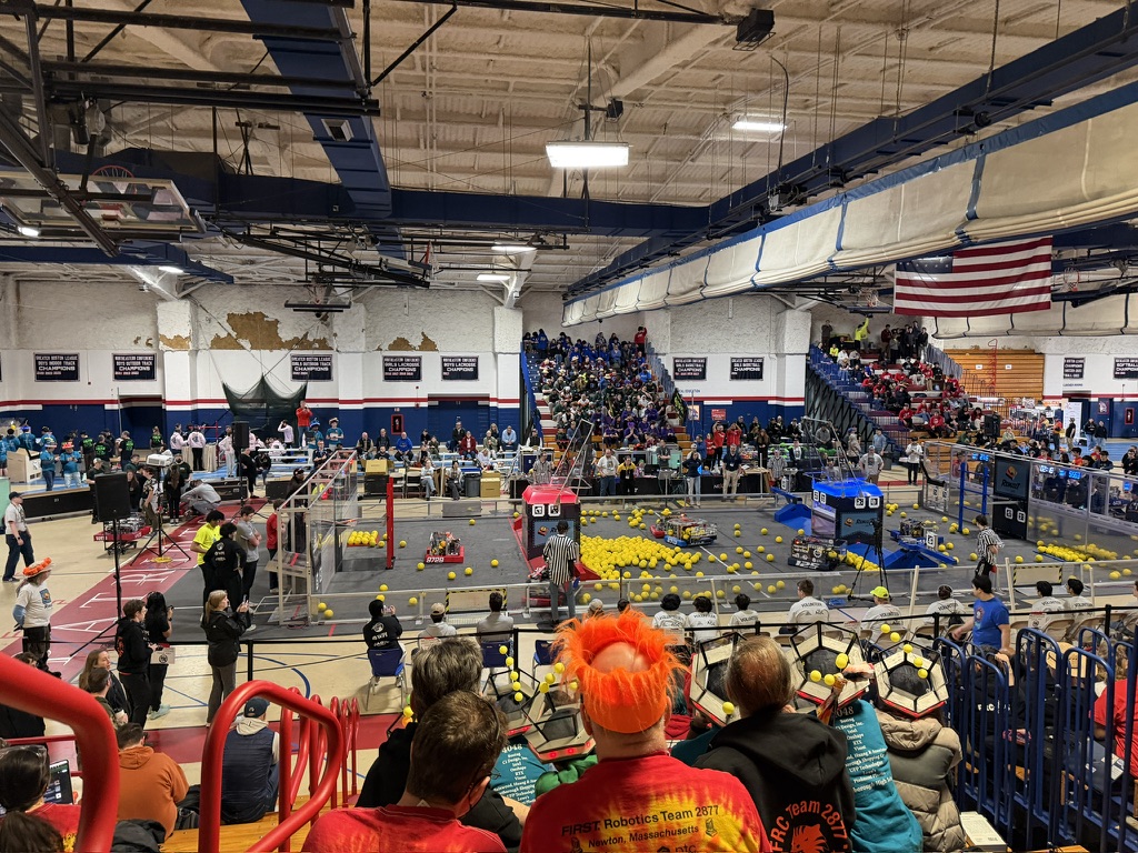 This weekend, earning the 2nd overall seed after 74 qualifying matches, the LigerBots dominated their way through the bracket, making the playoffs and winning every match in the playoffs until falling to the 1st seed Alliance in the semifinals. Fighting back through the lower bracket, FRC 2877 along with FRC 151, FRC 190 and backup robot FRC 8626 advanced to a best-of-three finals. There, they began by winning a nail-biting first match by just 4 points before dropping the second. In the decisive third match, our Alliance, with team 151 playing critical defense and teams 190 and 2877 pounding points into the hub, upset the 1st seed alliance by 4 points again to take the title!
